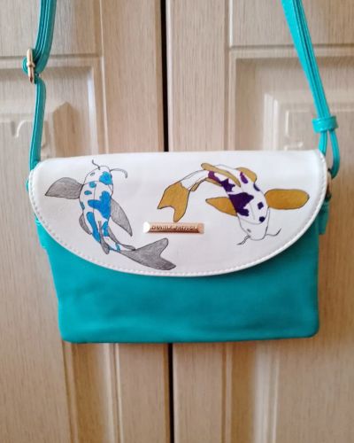 Роспись сделана акриловыми красками. Сумку можно мыть с моющими средствами. Размер 40*10*40 см.