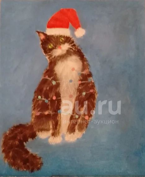Картина маслом черный кот в шапочке