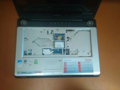 Неисправный ноутбук Toshiba Satellite A200-1M8. Корпус в сборе с крышкой, рамкой, петлями, поддон, топкейс, динамики. Предварительно неисправна видеокарта. Материнка iskaa LA-3481P rev.2A жива. Без памяти, аккумулятора, клавиатуры, диска.