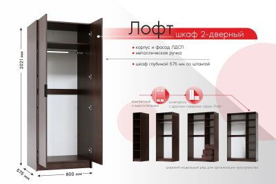 Шкаф 2-дверный Hoff Лофт