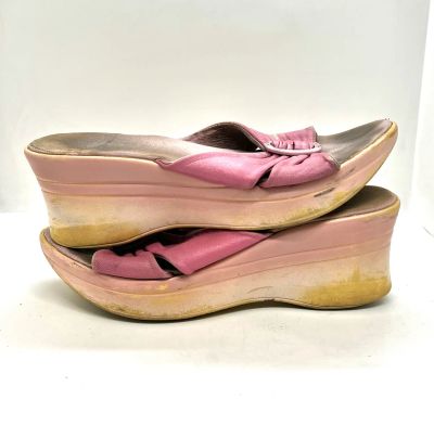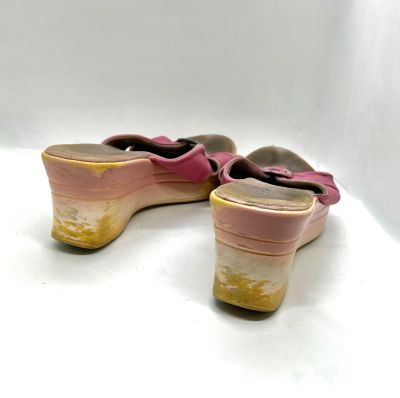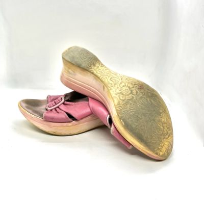👡 Босоножки женские сабо кожаные 37 размер на высокой платформе розовые ретро Европа 20 век / кожа натуральная туфли шлепанцы шлепки танкетки из натуральной кожи открытые пляжные на танкетке /