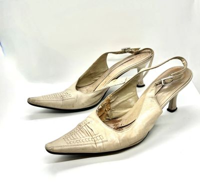 👡 Туфли женские 37 размер винтажные кожаные бежевые на каблуке открытая пятка Европа 20 век / босоножки кожа натуральная открытые ретро /